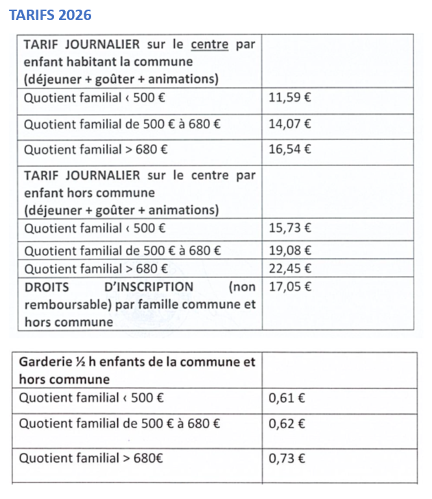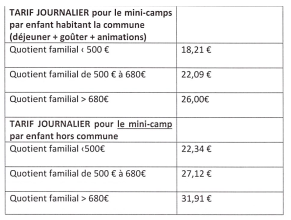 Le coût de la journée est fonction de votre quotient familial. Le tarif comprend le repas, le goûter et les activités.